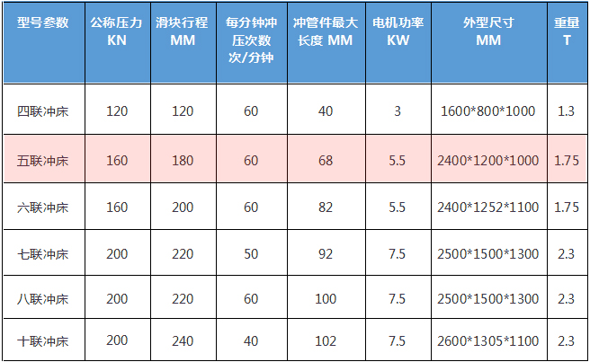 五聯(lián)式?jīng)_床基本參數(shù):